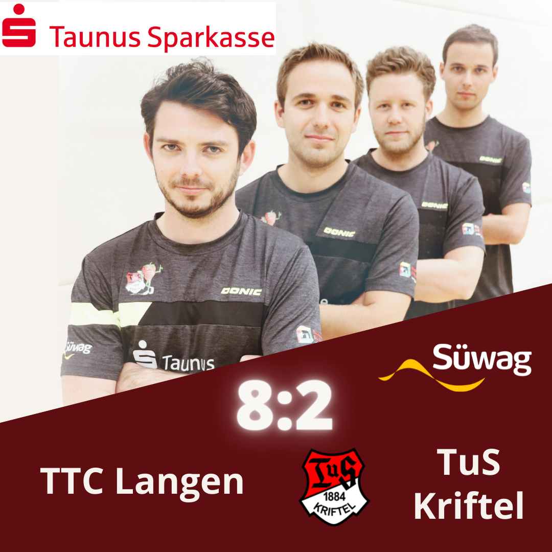 Nach der unglücklichen Heimniederlage in der vergangenen Woche, folgte eine doch recht deutliche Niederlage beim TTC Langen. Auch wenn die Krifteler als Außenseiter angereist waren, hatten sie sich dennoch mehr als ein 2:8 erhofft. Durch ein klares 0:3 gegen das erste Doppel und eine – leider wieder einmal – denkbar knappe Niederlage (9:11 im fünften Satz) in Doppel zwei, geriet das Team um Kapitän Christian Schneider gleich zu Beginn ins Hintertreffen. Danach folgte jedoch eine bärenstarke Leistung von Tobias Schneider gegen Langens Nummer 1 (11:8, 12:10, 11:3) sowie ein 4-Satz-Sieg von Björn Fröhlich Wagenbach gegen den ehemaligen Kriftler Makoto Nogami. Das waren an diesem Nachmittag jedoch die einzigen beiden Punkte für Kriftel. Im hinteren Paarkreuz hatten sowohl Christian Schneider als auch Mathias Stockhofe gute Chancen, mussten sich aber beide mit 1:3 geschlagen geben. Im zweiten Durchgang lief es dann aber auch im vorderen Paarkreuz nicht mehr rund. Tobias Schneider unterlag Nogami mit 0:3 und Fröhlich Wagenbach musste sich im fünften Satz (dort dann aber recht klar mit 5:11) gegen Ratushniak geschlagen geben. Damit war das Spiel entschieden, denn es stand 6:2 für Langen. Christian Schneider zeigte anschließend jedoch noch ein sehr ansehnliches Spiel, unterlag jedoch – wie Stockhofe ebenfalls – mit 0:3. Auch wenn angesichts einiger knapper Niederlagen, das 2:8 aus Kriftler Sicht etwas zu hoch erscheint, war der Langener Sieg verdient. Nächste Woche geht es dann in den hessischen Norden zum TSV Besse, wo das Team dann dringend Punkte holen muss, um die Chance auf den Klassenerhalt zu wahren.