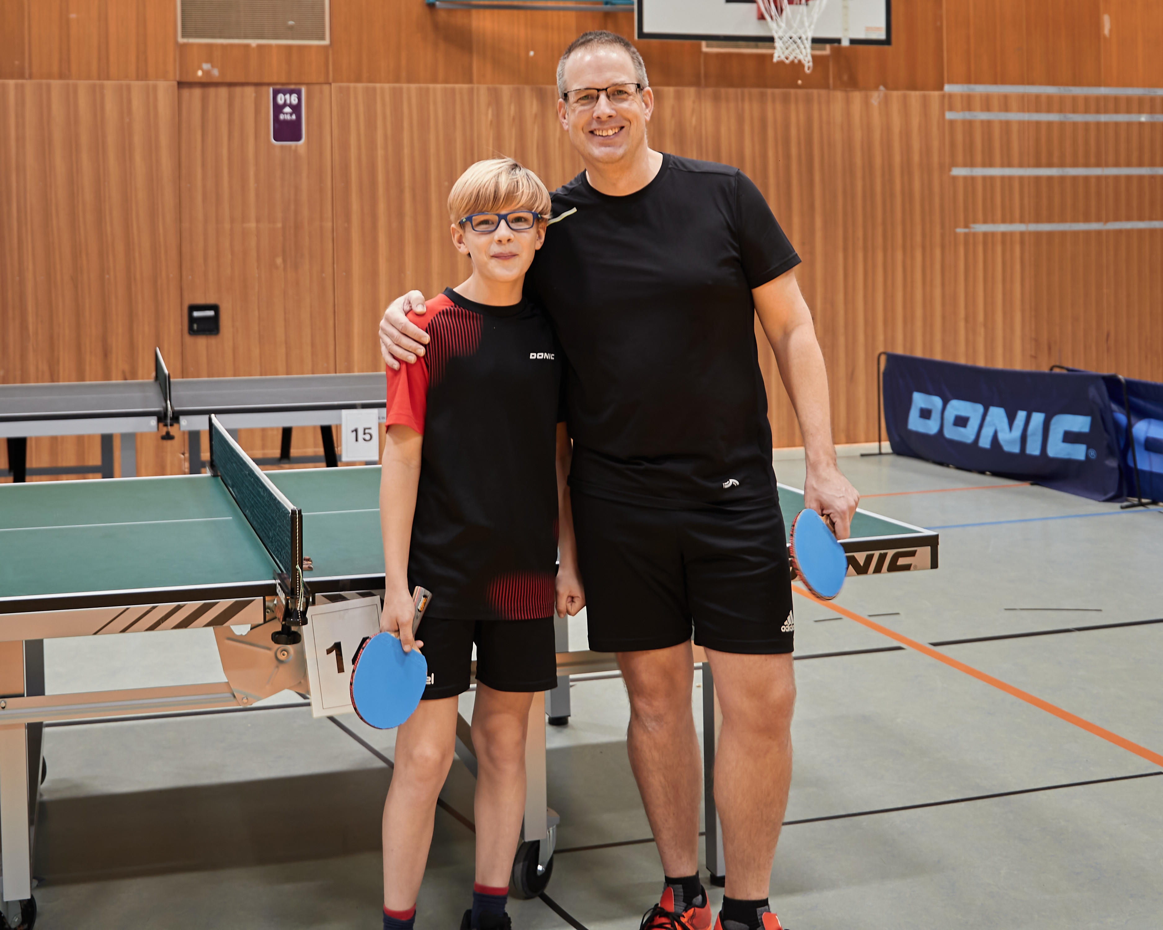 17 Paarungen meldeten sich zum Eltern-Kind-Turnier, ein neuer Rekordwert. Gespielt wurden 6 Runden im Schweizer System, bei dem immer ähnlich starke Teams aufeinandertreffen. Jedes Match begann mit dem Eltern-Kind-Doppel, gefolgt von den Einzel-Duellen der Kinder bzw. Eltern untereinander. Während es bei den Eltern meist eher entspannt zuging, wurde unter den Kindern teilweise erbittert gefightet. Letztlich hatte das favorisierte Duo aus Melissa und Matthias Mohr die Nase ohne eine Niederlage vorn. Auf dem zweiten Platz landete das Dreier-Team aus Luis, Lina und Stefan Biedenkapp, die ein Match verloren hatten. Der dritte Platz ging an Felix und Heiko Trinter, die knapp Kai und Antony Christoulakis hinter sich ließen.