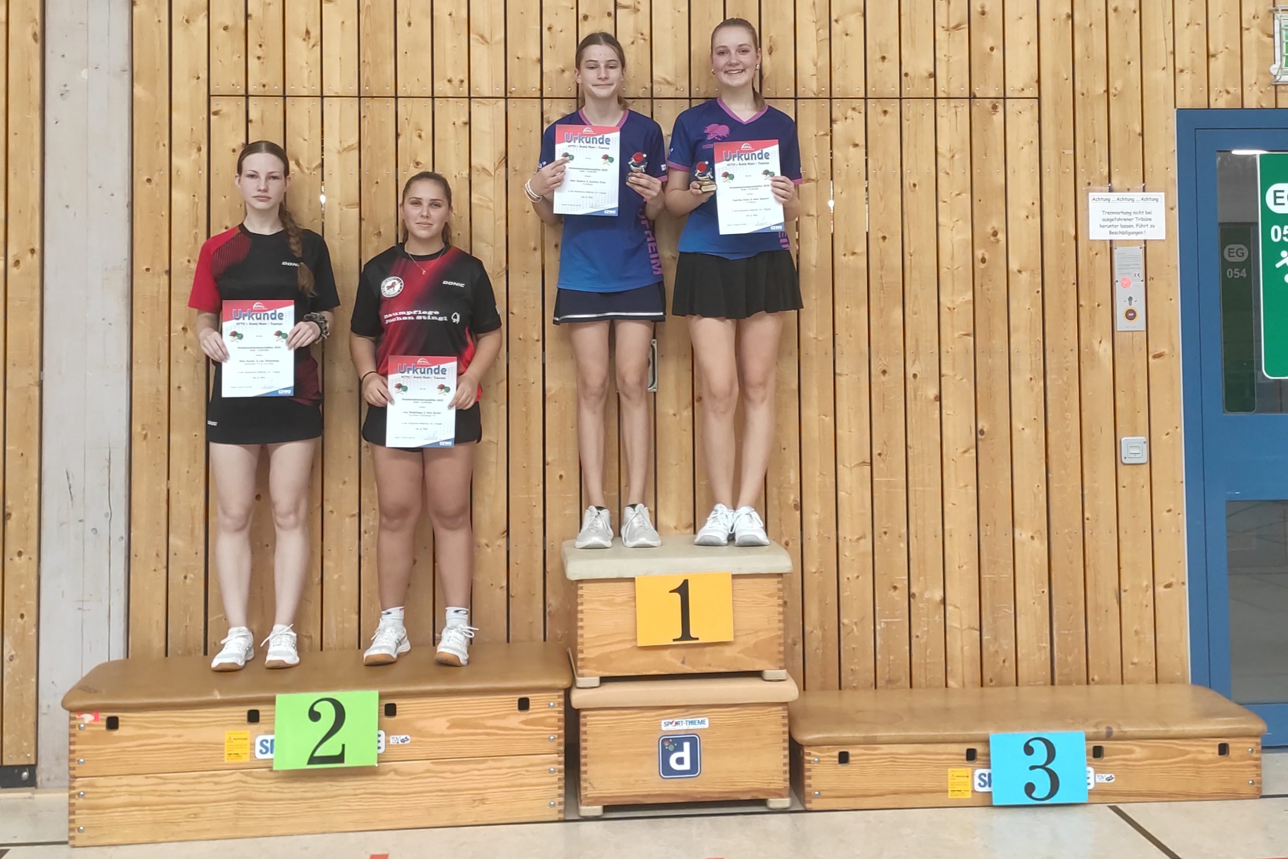 Im Doppel musste sie sich im direkten Endspiel zusammen mit Partnerin Alina Kucher (Bremthaler TTV) erwartungsgemäß dem Hofheimer Duo Kilian/Sewerin geschlagen geben.