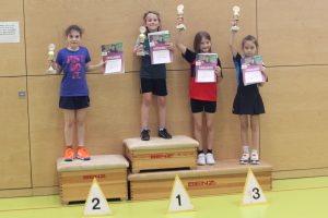 Als erstes startete Martha Erlenbach in der Klasse Mädchen 0-8. Die Siegerin des Kreisentscheids spielte sich bis ins Finale, wo sie in einem spannenden Fünfsatzmatch mit 2:3 unterlag. Nach kurzer Enttäuschung konnte sich Martha aber über die Qualifikation für den Verbandsentscheid freuen.