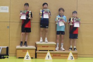 Weiter ging es bei den Jungen 9-10. Hier waren die Krifteler Felipe Canovas Glawe und Linus Boroday dabei. Beide setzten sich in ihren Vorrundengruppen problemlos durch und gewannen auch ihre Viertelfinalspiele. Im Halbfinale musste sich Linus dann in einem guten Spiel geschlagen geben, während Felipe sicher in das Finale einzog. Der Sieger aus Oberursel war aber auch für ihn nicht zu stoppen und Felipe unterlag mit 1:3. Sowohl Felipe als auch Linus folgten aber Martha zum Verbandsentscheid.
