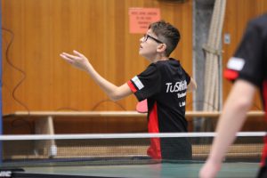 Bereits vor der Partie war klar, dass unser Team die Saison auf Platz 8 beenden würde. Somit konnte man locker in das Spiel gegen die favorisierten Staffeler gehen. Im Doppel mussten sich Felix Raschdorf/Jakob Hartel zunächst deutlich geschlagen geben, aber Leonard Manic und Ersatzmann Linus sorgten mit einem umkämpften 3:2-Erfolg für den Ausgleich. In den ersten Einzeln hielten Felix und Jakob im vorderen Paarkreuz zwar gut mit, unterlagen aber jeweils mit 1:3. Nur knapp verpasste danach Linus eine Überraschung, erst im fünften Satz wurde sein Einzel zu seinen Ungunsten entschieden. Dagegen präsentierte sich Leo wie bereits in der Vorwoche in Topform und erkämpfte sich einen 3:2-Erfolg. Im vorderen Paarkreuz war erneut nichts zu holen, Jakob holte aber immerhin einen weiteren Satzgewinn. Damit stand die Niederlage zwar fest, das hinderte Leo und Linus aber nicht daran, im hinteren Paarkreuz noch zwei überraschende Punkte einzufahren. Mit der 4:6-Niederlage hat sich die Jugend 15-1 somit achtbar aus ihrer ersten Hessenliga-Saison verabschiedet. Wie es mit der Mannschaft in der kommenden Saison weitergeht, entscheidet sich nun in den nächsten Wochen.