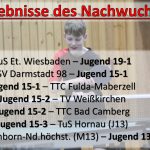 Dezimierte Jugend 19-1 unterliegt in Braunfels / Jugend 19-2 muss sich dem Tabellennachbarn Wallau geschlagen geben / Zweites Unentschieden in Folge für Jugend 15-1 / Jugend 15-3 marschiert in der Kreisliga weiter von Sieg zu Sieg / Jugend 13-1 büßt mit erstem Punktverlust die Tabellenführung ein / Jugend 13-2 spielt Unentschieden gegen Flörsheim / Nachwuchsspieler der Woche: Linus Hellmich