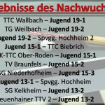 Jugend 19-1 muss zweite Niederlage in Folge hinnehmen / Jugend 19-2 in Notbesetzung verliert in Hochheim / 1. Jugend 15 ohne Spitzenspieler chancenlos gegen Bruchköbel / Jugend 15-2 erkämpft sich am Doppelspieltag weitere vier Punkte / Jugend 13-1 lässt der zweiten Kelkheimer Mannschaft keine Chance / Jugend 13-2 unterliegt erwartungsgemäß bei der SG Kelkheim / Nachwuchsspieler der Woche: Linus Hellmich