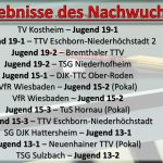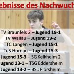 Dezimierte Jugend 19-1 unterliegt in Braunfels / Jugend 19-2 muss sich dem Tabellennachbarn Wallau geschlagen geben / Zweites Unentschieden in Folge für Jugend 15-1 / Jugend 15-3 marschiert in der Kreisliga weiter von Sieg zu Sieg / Jugend 13-1 büßt mit erstem Punktverlust die Tabellenführung ein / Jugend 13-2 spielt Unentschieden gegen Flörsheim / Nachwuchsspieler der Woche: Linus Hellmich